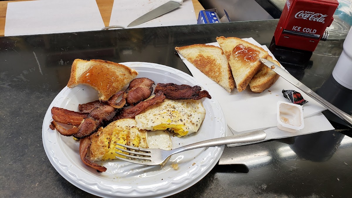 Friendly people, we ate at the counter. 2 eggs, 2 Texas toast, and a boat load of bacon for only 6 dollars. Enjoyed the meal. We went for a burger, but they dont start making burgers till 11. Plan on going back next week for the burger.