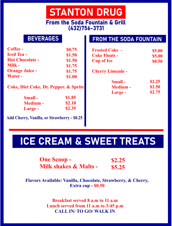 Stanton Drug & Grill, located at 201 N Saint Peter St, Stanton, TX 79782, United States, is a true small-town gem that perfectly blends health, hospitality, and hearty comfort food. This family-run pharmacy not only provides reliable pharmaceutical services but also offers an inviting grill that locals and travelers alike can’t resist. From filling prescriptions to serving up juicy burgers and creamy milkshakes, it’s the kind of place that captures Texas charm in every detail.